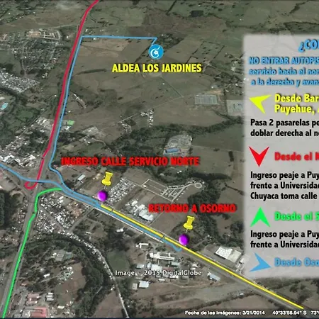 تقع الفيلا على بعد 3.9 كم عن ميدان أرماس وتبعد أيضاً ب3.8 كم عن Cuarto Centenario Park. هنالك الغرف مع الصالون ومكتب العمل ولوازم إعداد القهوة والشاي في فيلا Cabanas Aldea Los Jardines De Osorno.